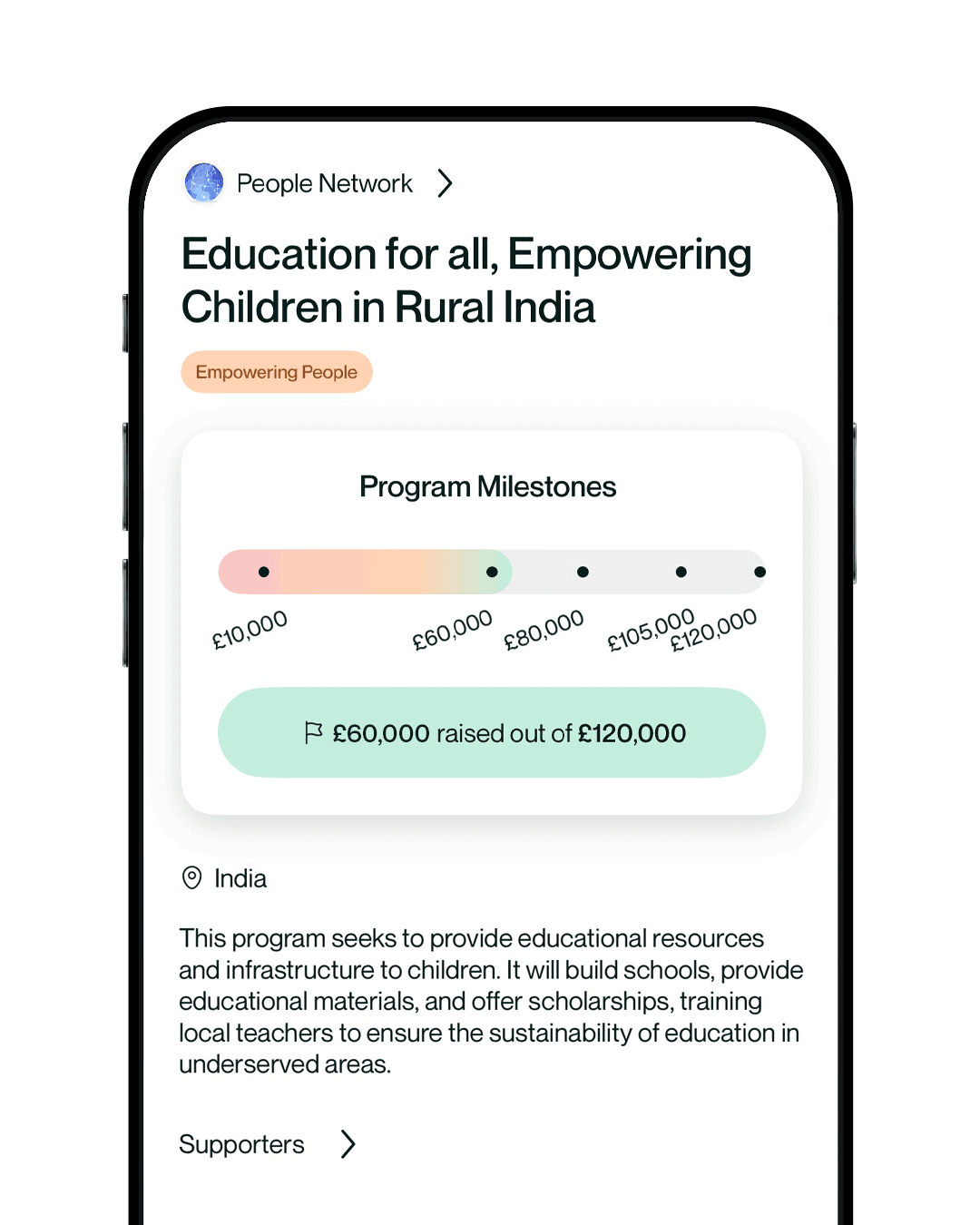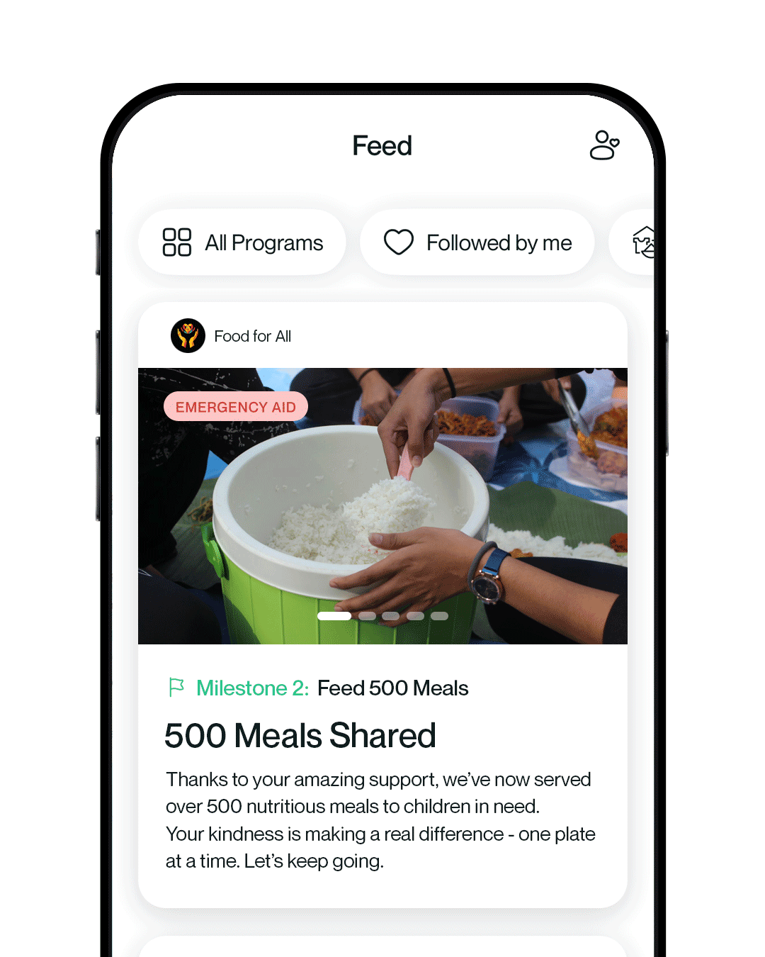 Give to a cause that reflects your values. Follow the journey through milestone updates, see the progress, stories, and positive change your support helps bring to life.